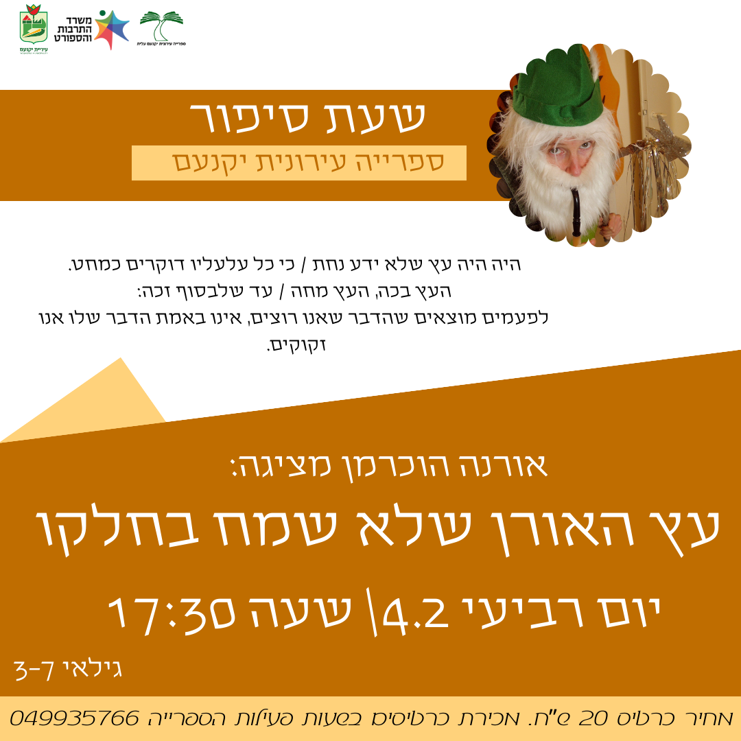 שעת סיפור – עץ האורן שלא שמח בחלקו ; מספרת – אורנה הוכרמן